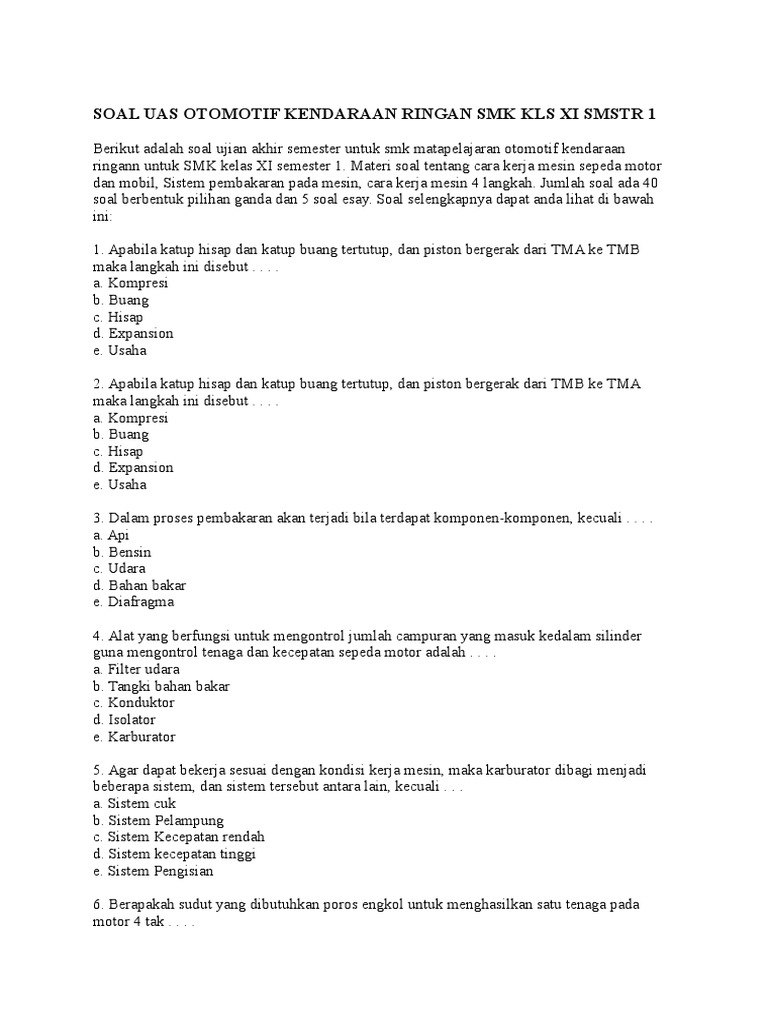Untuk mengunduh file gunakan tombol download yang tersedia. Tegangan total adalah 12 v, arus total adalah 35 a b. Home › soal dan jawaban › soal dan kunci jawaban › soal otomotif › soal tdo › soal uas otomotif. Pengenalan materi dan peralatan serta kelengkapan gambar teknik. Rencana pelaksanaan pembelajaran atau rpp merupakan salah satu komponen administrasi yang dibutuhkan oleh tenaga pendidik.